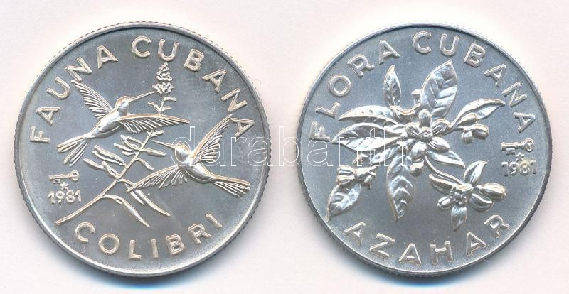 Leírás: Kuba 1981. 5P Ag "Kuba Állatvilága - Kolibri" + 1981. 5P Ag "Kuba Növényvilága - Narancsvirág" T:1