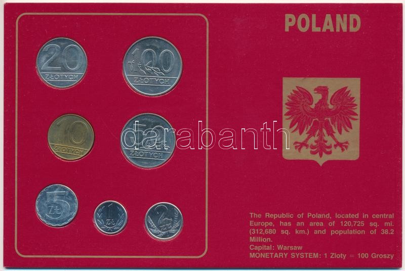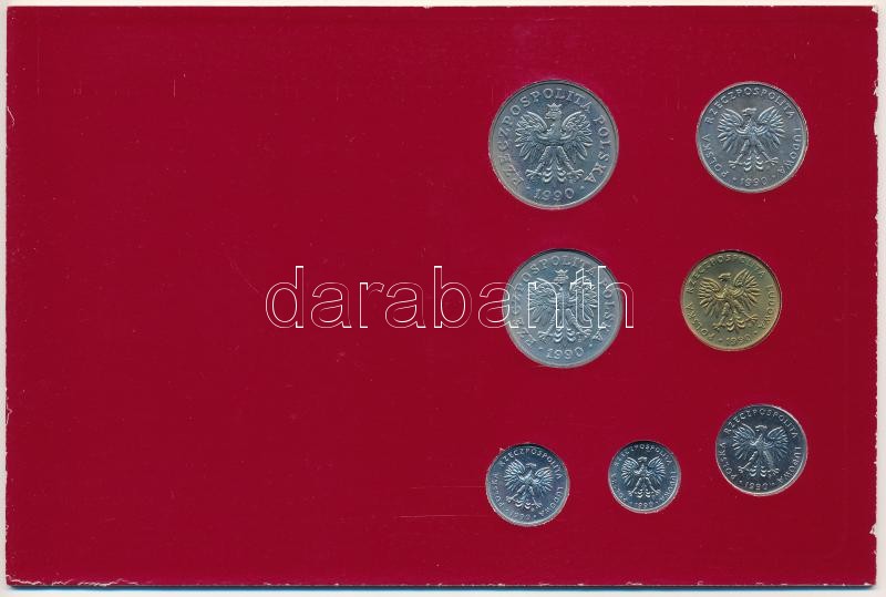 Poland 1990. 1 Zloty - 100 Zlotych (7xdiff) coin set on cardboard in a plastic case C:AU,XF patina