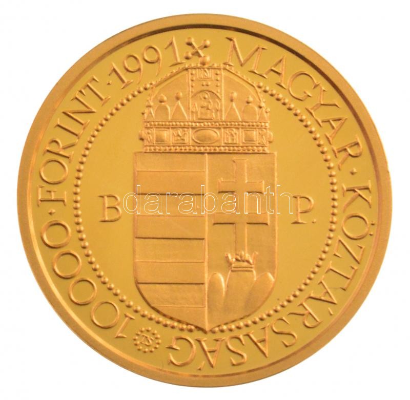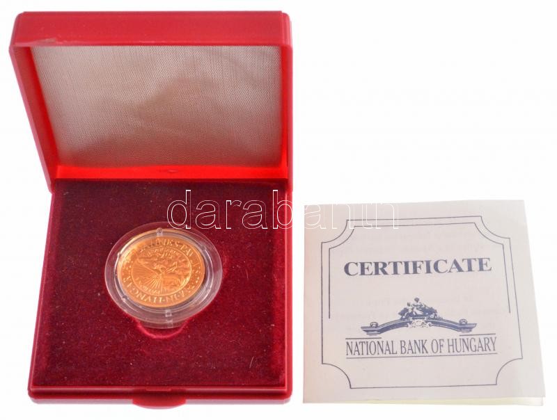 1991. 10.000Ft Au "II. János Pál pápa látogatása" dísztokban, tanúsítvánnyal (7,02g/0.986) T:PP Hungary 1991. 10.000 Forint Au "Visit of Pope John Paul II" in original case with certificate (7,02g/0.986) C:PP Adamo EM121, Krause KM#684