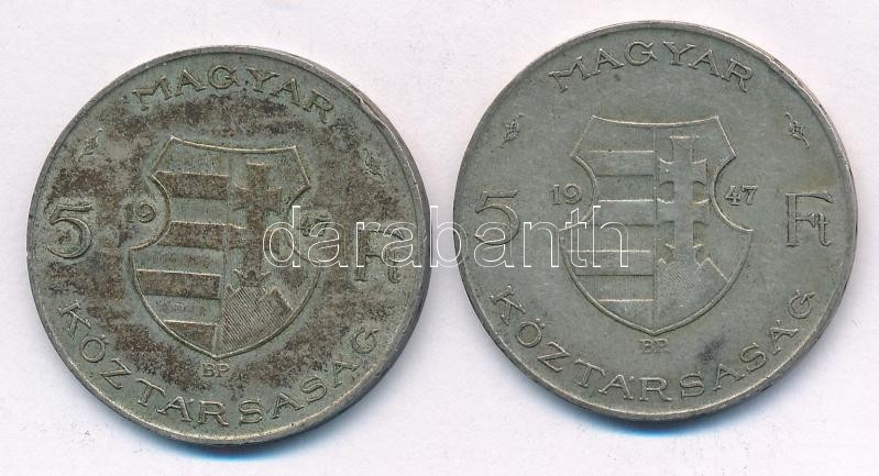 Leírás: 1947. 5Ft Ag "Kossuth" (2x) T:2-,3 patina