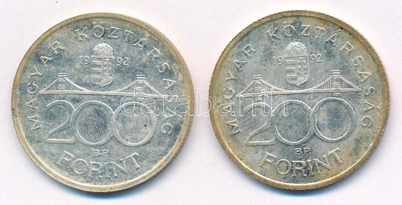 1992. 200Ft Ag "MNB" (2x) T:1-,2 patina