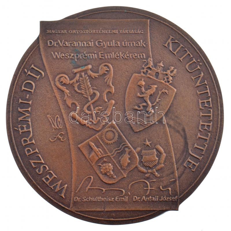 Leírás: Fritz Mihály (1947-) 2016. "Dr. Varannai Gyula orvostörténész jubielumára / Weszprémi-díj kitüntetettje" Br emlékérem (126-135mm) T:1- kis patina
