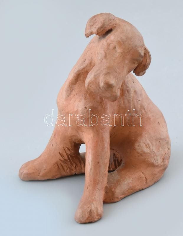 Leírás: Kutya, égetett agyag, jelzés nélkül, hibátlan, m: 13cm