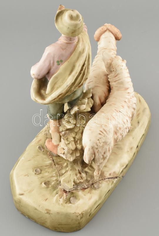Leírás: Osztrák-Magyar Monarchia 1880 körül: Birkapásztor fiú. Festett fajansz, erősen sérült, hiányos, restaurált, kopott stb. Jelzés nélkül, m:32cm