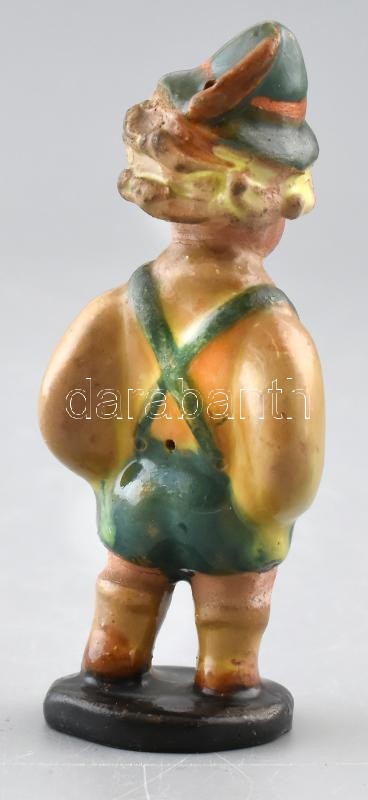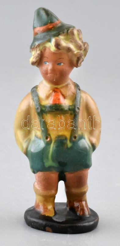 Leírás: Szécsi kerámia fiú figura. Kézzel festett, mázas kerámia, jelzett, kopásokkal. m: 11 cm