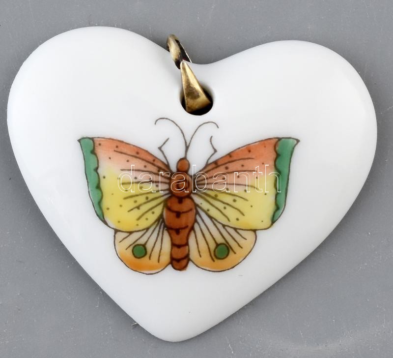 Leírás: Herendi Pillangó mintás, szív medál, kézzel festett, jelzett, kopott, 3×3,5 cm