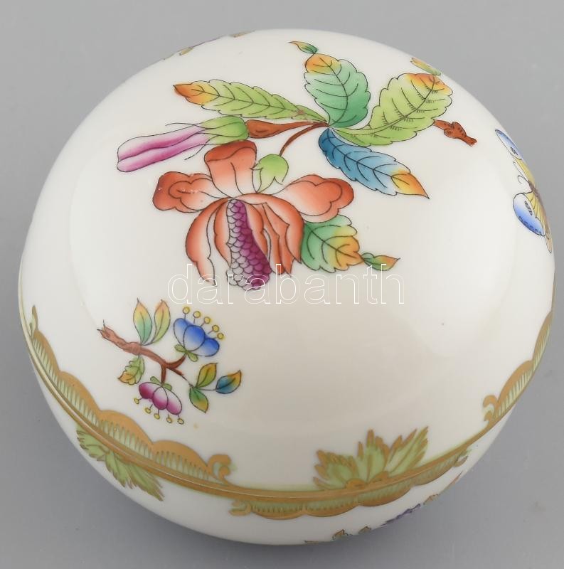 Herendi Viktória mintás bonbonier. Kézzel festett, jelzett, hibátlan. ... https://www.darabanth.com/hu/415-Gyorsarveres/415.0/Porcelan-keramia-uveg/Porcelan~500006/Herendi-Viktoria-mintas-bonbonier-Kezzel-festett-jelzett-hibatlan-m-7-cm-d-9-5-cm~II2602157