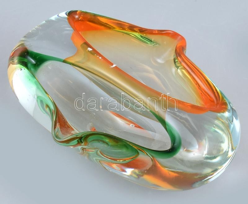 Leírás: Cseh üveg kínáló, kopásnyomokkal, 15x11cm