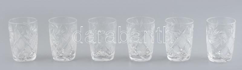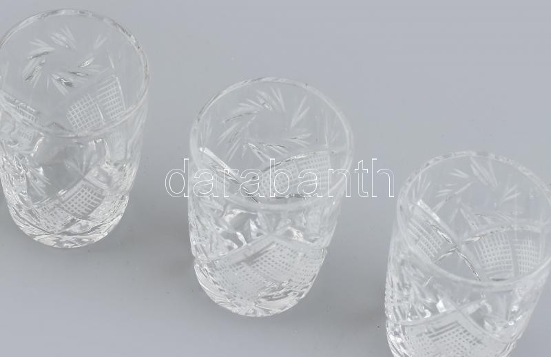 Leírás: Ólomkristály likőrös pohár, metszett, kis kopásnyomokkal, egyik repedt, 6 db,.