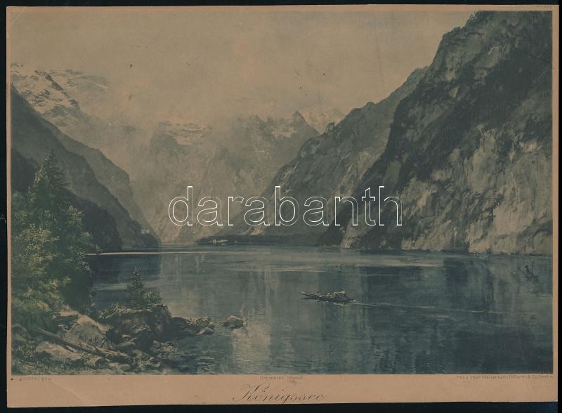 Edward Harrison Compton (1881-1960) festménye után: Königssee. Heliogravűr, papír, jelzett a metszeten, körbevágva, bal alsó sarkában törésnyommal, 17×25 cm