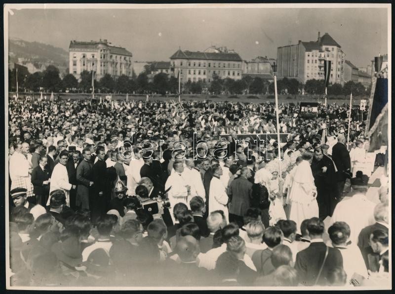 1931 Budapest, Szent Imre év alkalmából Budapesten Aloisio Sincero pápai legátussal celebrált mise a Vérmezőn. Macsi András pecséttel jelzett fotója. 24x16 cm