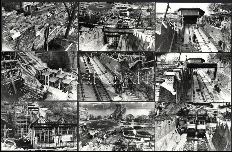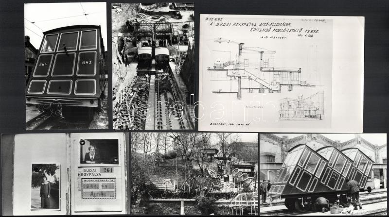 1986 Budapest, a budai sikló építéséről készült felvételek, 13 db datált vintage fotó, ezüstzselatinos fotópapíron, + hozzáadva egy 1941-es műszaki rajz repróját + hozzáadva egy 1944-es bérlet fotó másolatát, amely a budai hegypálya igénybevételére jogosít, 9x14 cm és 13x18 cm