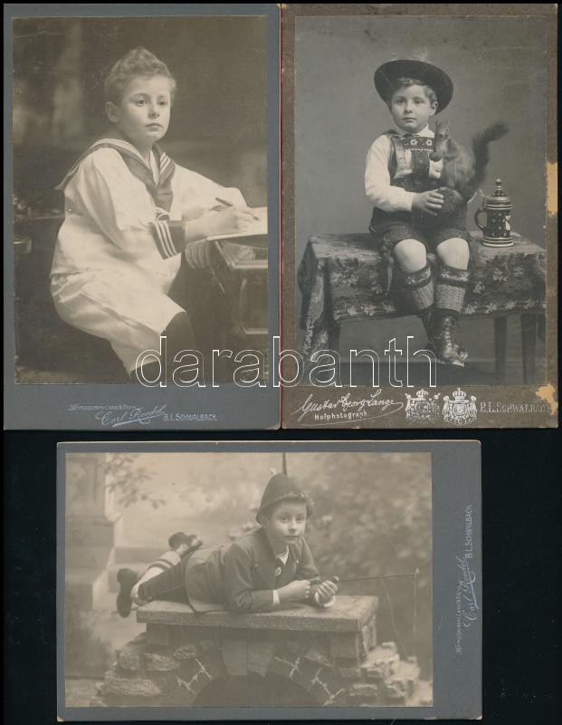 Leírás: Cca. 1880 Bad-Langen Schwalban, Carl Roedel fényképész műtermében készült, kemény hátú vintage fotó, gyermekek. 14,5x10 cm (3db)