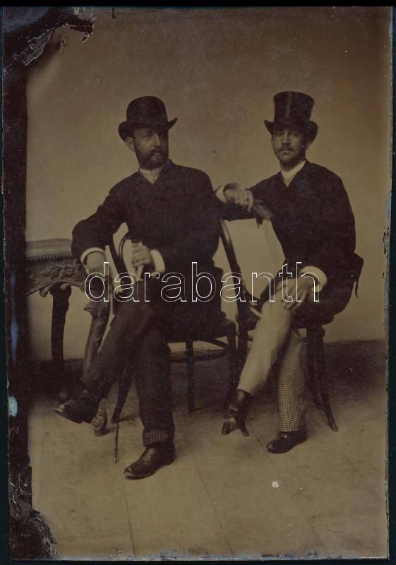 cca 1900-1910 Kalapos urak, ferrotípia, 9x6 cm https://www.darabanth.com/hu/416-Gyorsarveres/416.0/Fotomuveszet/Foto~500021/cca-1900-1910-Kalapos-urak-ferrotipia-9x6-cm~II2613710