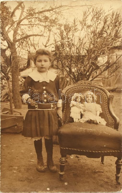 Leírás: cca 1900 Boczkó Edit (szül. Ruzicska) gyerekkori portréja, selyemre készített keményhátú fotó (Klomann Nándor esztergomi műterméből), vizitkártya, paszpartuban, keretben, 16x10,5 cm (külső méret: 29,5x24 cm) + ugyanaz a felvétel fotólapon, hátoldalán feliratozva, 14x9 cm