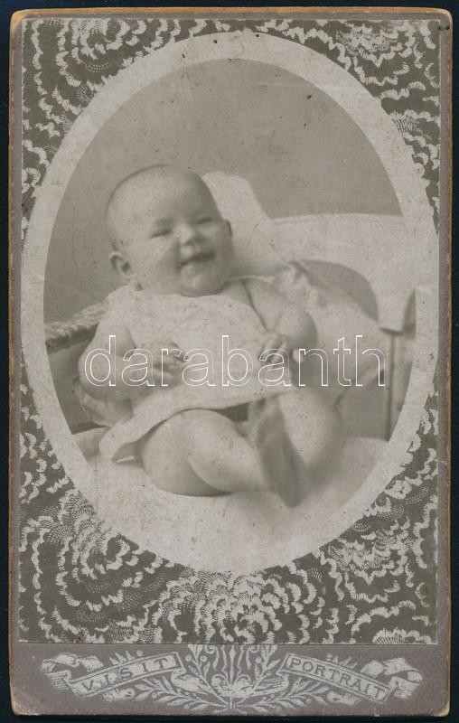 Leírás: cca 1910 Babaportré, keményhátú fotó Molnár Dezső csepeli műterméből, 10,5×6,5 cm
