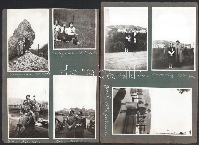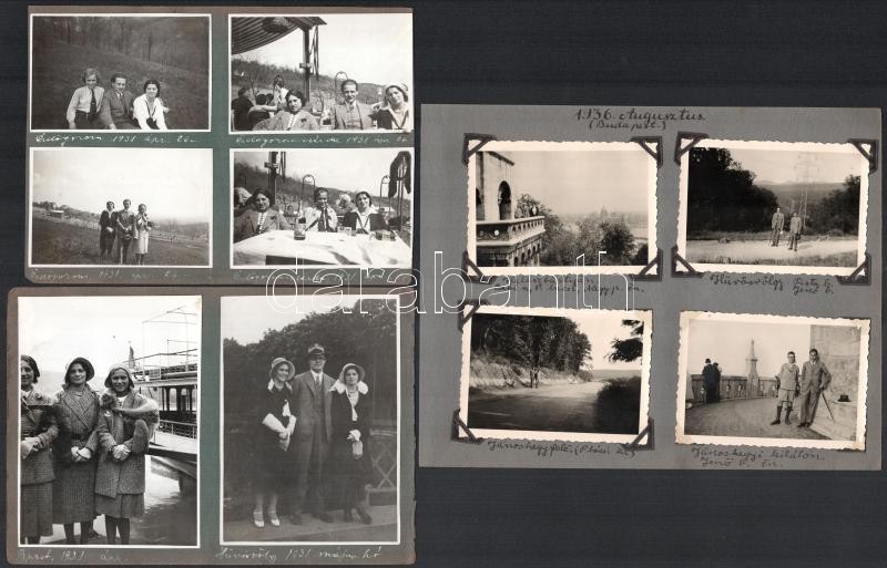 Leírás: cca 1930-1940 Budapesten készült amatőr fotók, albumlapra ragasztva, feliratozva, 23 db, vegyes méretben