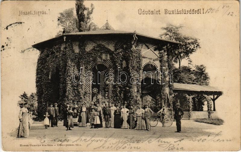 1906 Buziásfürdő, Baile Buzias; József forrás. Nosek Gusztáv kiadása /... https://www.darabanth.com/hu/416-Gyorsarveres/416.0/Kepeslapok/Erdely~2000011/1906-Buziasfurdo-Baile-Buzias-Jozsef-forras-Nosek-Gusztav-kiadasa-spa-spring-source-EK~II2617725