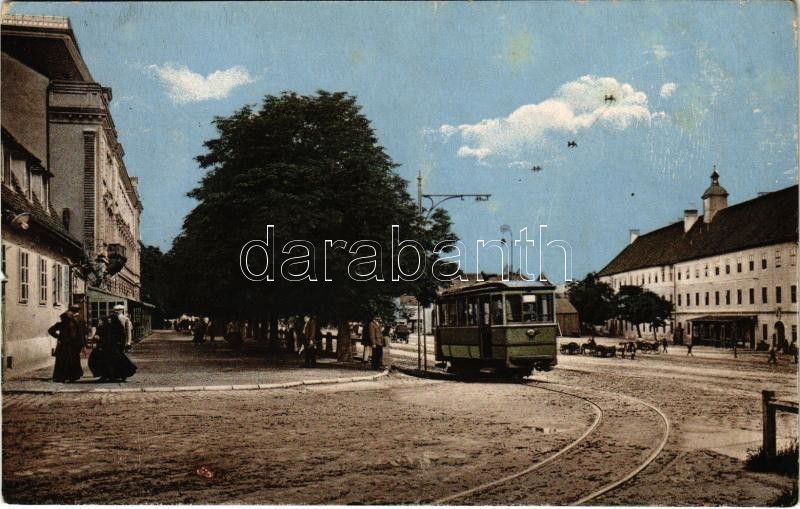 Leírás: 1915 Nagyszeben, Hermannstadt, Sibiu; Fő tér villamossal / main square, tram