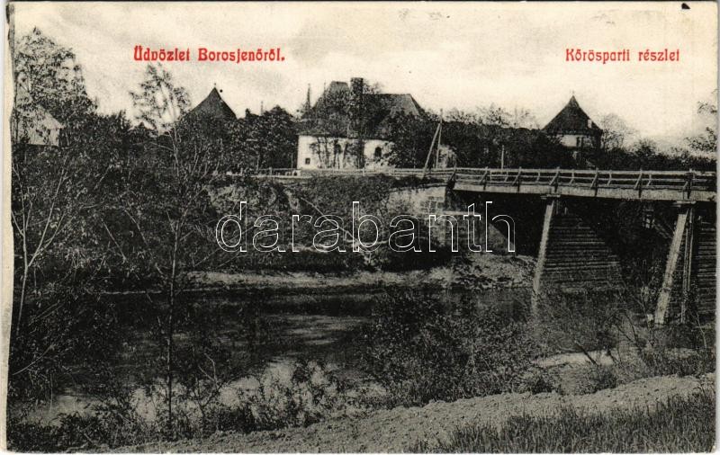 Leírás: Borosjenő, Borosineu, Ineu; Körös-parti részlet, híd. Kerpel Izsó kiadása / Cris riverside, bridge