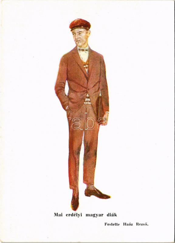 Leírás: Kolozsvár, Cluj; Mai erdélyi magyar diák. Az Erdélyi Magyar Ifjúságért. Studentika / Transylvanian Studentica art postcard s: Haáz Rezső