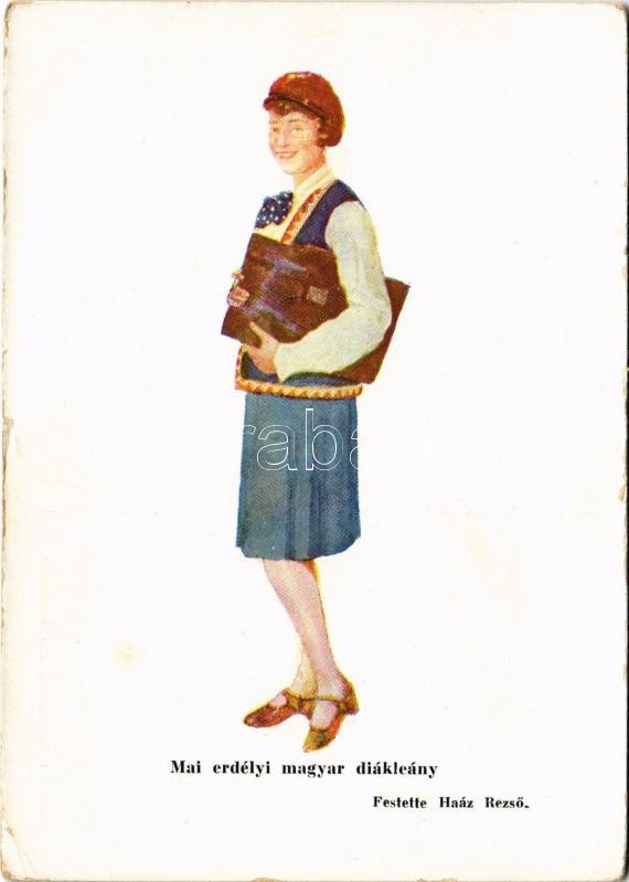 Kolozsvár, Cluj; Mai erdélyi magyar diákleány. Az Erdélyi Magyar Ifjúságért. Studentika / Transylvanian Studentica art postcard s: Haáz Rezső (kis szakadás / small tear)
