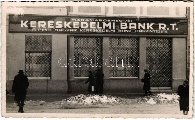 Máramarossziget, Sighetu Marmatiei; Horthy Miklós tér, Máramaros Megyei Kereskedelmi Bank R.T. (a Pesti Magyar Kereskedelmi Bank Leányintézete) / square, bank. photo