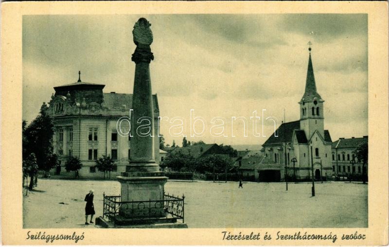 Szilágysomlyó, Simleu Silvaniei; Tér részlet és Szentháromság szobor, ... https://www.darabanth.com/hu/416-Gyorsarveres/416.0/Kepeslapok/Erdely~2000011/Szilagysomlyo-Simleu-Silvaniei-Ter-reszlet-es-Szentharomsag-szobor-templom-Heimlich-Sand~II2613557