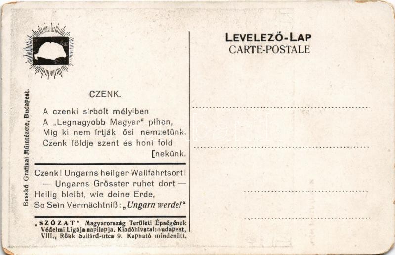 Kiscenk (Nagycenk), Széchenyi Mauzóleum; hátoldalon irredenta szöveg, kiadja a "Szózat" Magyarország Területi Épségének Védelmi Ligája napilapja. Besskó Grafikai Műintézete / Hungarian irredenta propaganda s: Makoldy József (EM)