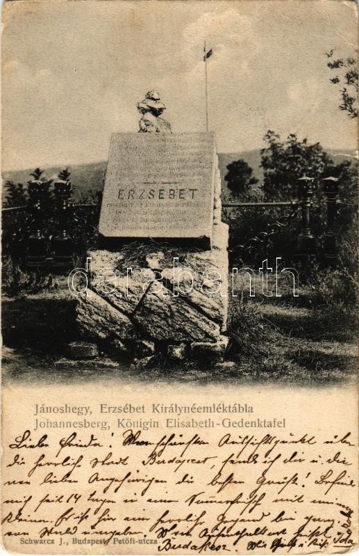 1903 Budapest XII. Jánoshegy, Erzsébet királyné (Sisi) emléktábla. Sch... https://www.darabanth.com/hu/416-Gyorsarveres/416.0/Kepeslapok/Magyarorszag~2000012/1903-Budapest-XII-Janoshegy-Erzsebet-kiralyne-Sisi-emlektabla-Schwarcz-J-kiadasa-azot~II2601642