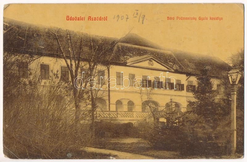 1907 Aszód, Báró Podmanitzky (Podmaniczky) Gyula kastélya. W.L. 924. (... https://www.darabanth.com/hu/416-Gyorsarveres/416.0/Kepeslapok/Magyarorszag~2000012/1907-Aszod-Baro-Podmanitzky-Podmaniczky-Gyula-kastelya-WL-924-fa~II2618490