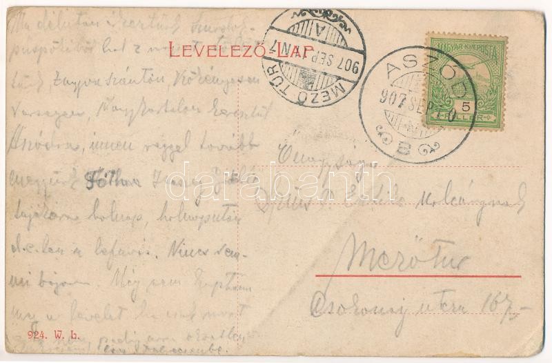 Leírás: 1907 Aszód, Báró Podmanitzky (Podmaniczky) Gyula kastélya. W.L. 924. (fa)