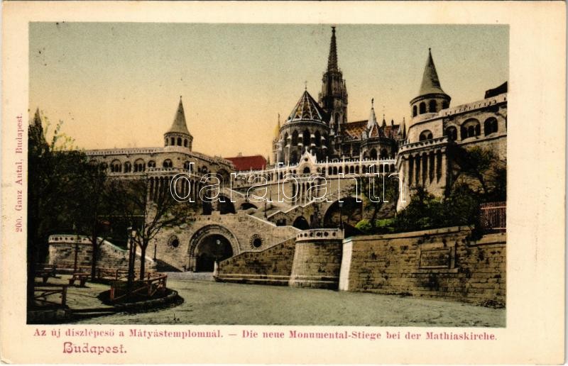 Leírás: Budapest I. Új díszlépcső a Mátyás templomnál. Ganz Antal 200. (EK)