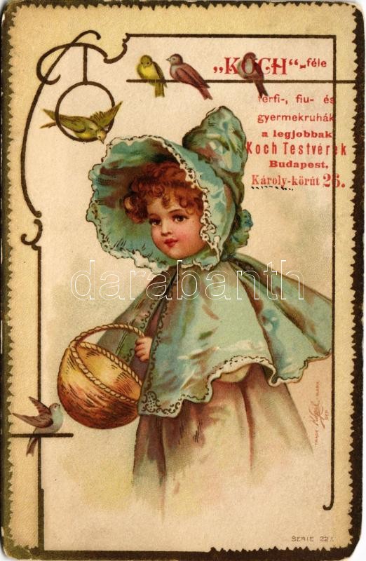 Leírás: Koch-féle férfi-, fiú- és gyermekruhák a legjobbak. Koch Testvérek üzletének reklámlapja. Budapest, Károly körút 26. / Hungarian clothing shop's advertisement, litho (EM)