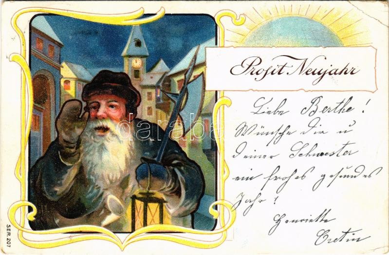 1906 Prosit Neujahr / Újévi üdvözlet, éjjeli őr lámpással / Art Nouvea... https://www.darabanth.com/hu/416-Gyorsarveres/416.0/Kepeslapok/Udvozlolapok-Unnepek~2000076/1906-Prosit-Neujahr-Ujevi-udvozlet-ejjeli-or-lampassal-Art-Nouveau-New-Year-greeting-l~II2618256