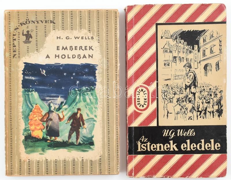 Leírás: 2 db H.G. Wells kötet: Az istenek eledele, Emberek a Holdban. Bp. 1957 BIbliotheka. Kissé sérült papírkötésben