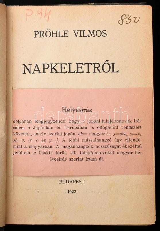 Prőhle Vilmos: Napkeletről. Bp., 1922., Stádium. Átkötött félvászon-kö... https://www.darabanth.com/hu/416-Gyorsarveres/416.0/Konyvek/Konyvek-Egyeb-ritkasagok~1000025/Prohle-Vilmos-Napkeletrol-Bp-1922-Stadium-Atkotott-felvaszon-kotesben-volt-konyvt~II2615835