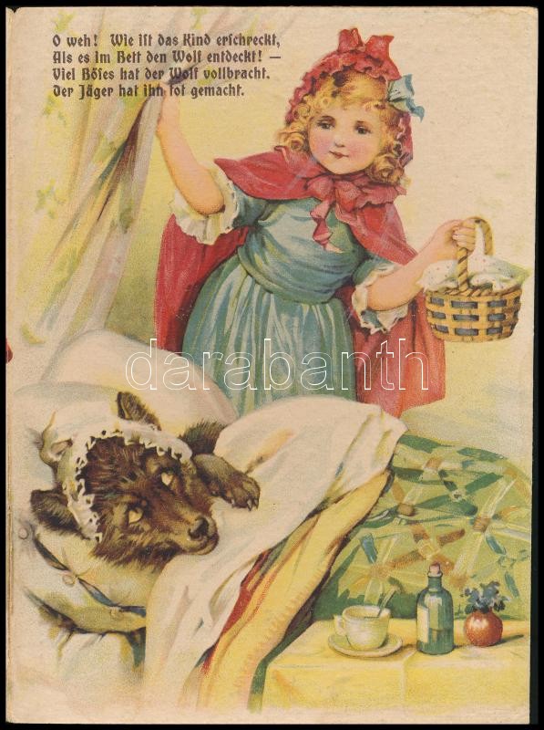 Lieblings-Märchen (Kedvenc Meséim): Rotkäppchen (Piroska és a farkas), Ränsel und Grerel. Német nyelvű mesekönyv. 5 számozott levél. Kopottas állapotban.