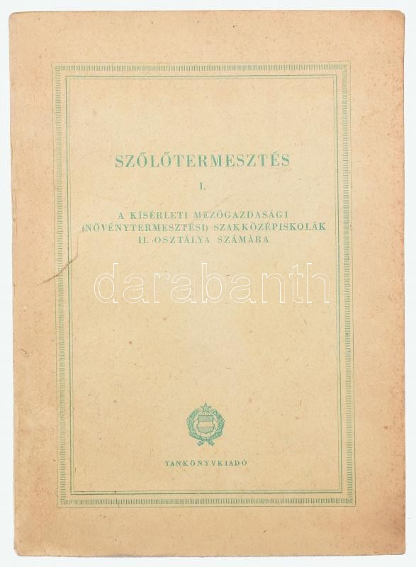 Szőlőtermesztés a kísérleti mezőgazdasági (növénytermesztési) szakközé... https://www.darabanth.com/hu/416-Gyorsarveres/416.0/Konyvek/Konyvek-Termeszettudomany-medicina~1000015/Szolotermesztes-a-kiserleti-mezogazdasagi-novenytermesztesi-szakkozepiskolak-II-oszt~II2618862