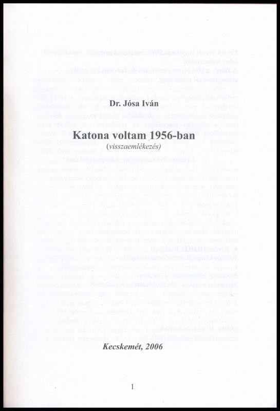 Dr. Jósa István: Katona voltam Debrecenben 1956-ban. Kecskemét, 2006. ... https://www.darabanth.com/hu/416-Gyorsarveres/416.0/Konyvek/Konyvek-Tortenelem~1000009/Dr-Josa-Istvan-Katona-voltam-Debrecenben-1956-ban-Kecskemet-2006-Kiadoi-papirkotesben~II2610479