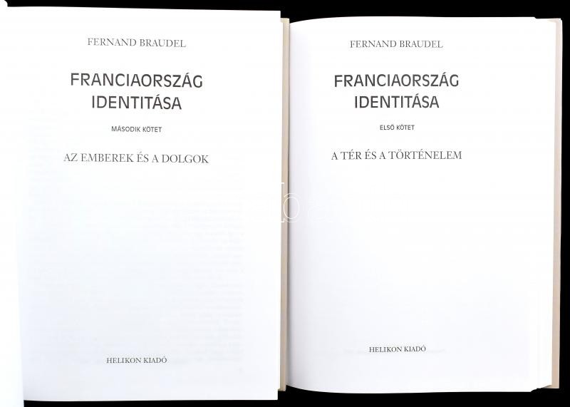 Fernand Braudel: Franciaország identitása. I-II. köt. I. köt.: A tér és történelem. II. köt.: Az emberek és dolgok. Ford.: Sahin-Tóth Péter. Bp.,2004,Helikon. Kiadói kartonált papírkötés, kiadói papír védőborítóban.