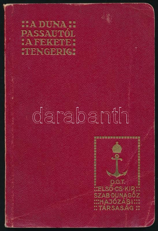 A Duna Passautól a Fekete tengerig. Bp., 1914, Első Cs. és Kir. Szab. Dunagőzhajózási Társaság, 160 p. Fekete-fehér képekkel illusztrálva, korabeli hirdetésekkel. Kiadói papírkötés, kissé sérült borítóval.