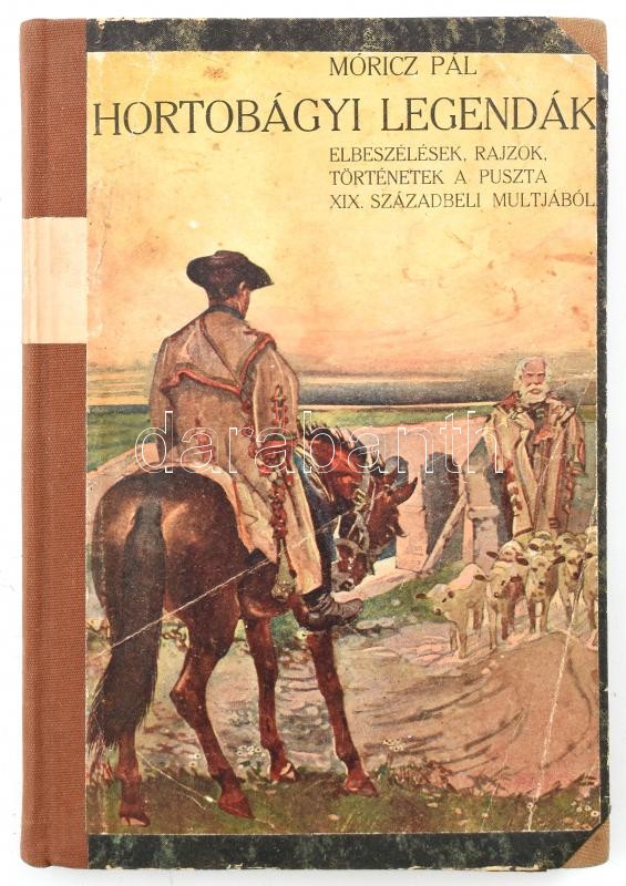 Móricz Pál: Hortobágyi legendák. Elbeszélések, rajzok, történetek a puszta XIX. századbeli múltjából. Debrecen, [1927], Városi Nyomda, 180 p. Átkötött félvászon-kötés, átkötéskor az eredeti papírborító egy részét felhasználták, kissé sérült, foltos borítóval, helyenként foltos lapokkal.