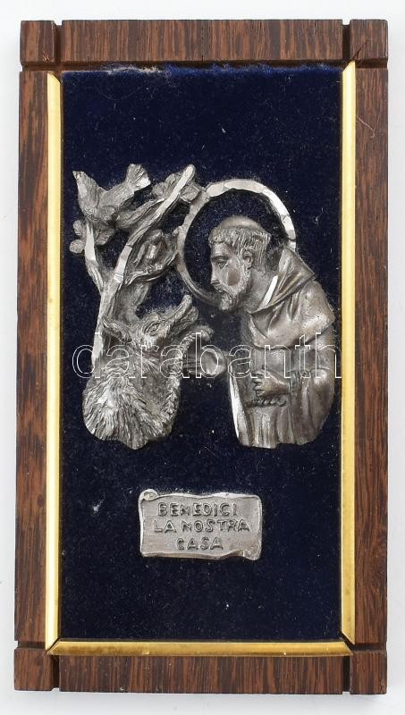 Leírás: Szent Benedek emlék, fém, fára applikálva. 15x9cm