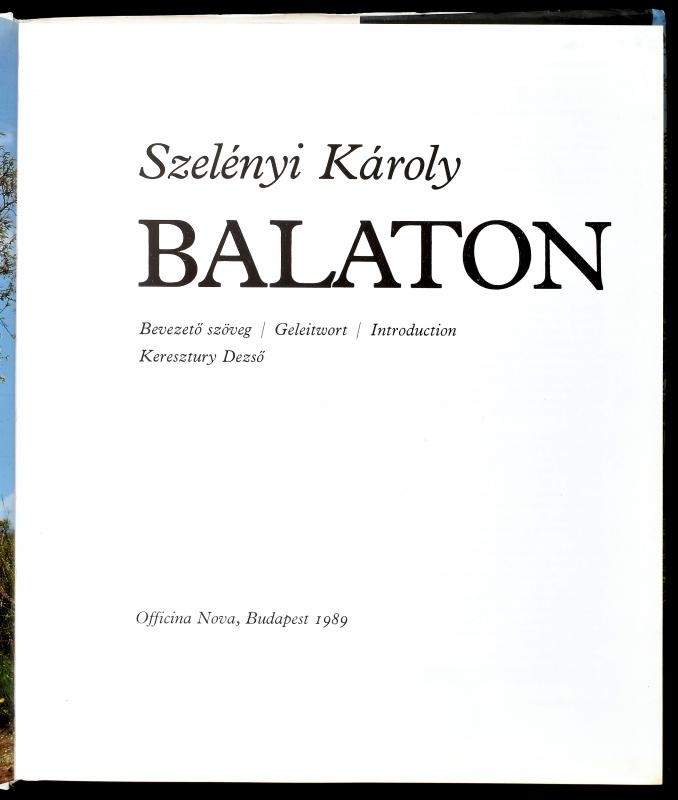 Szelényi Károly: Balaton. - - fényképei. Keresztury DezsÅ‘ bevezetÅ‘jével. Bp., 1989., Officina Nova. Magyar, német és angol nyelven. Kiadói egészvászon-kötésben, kiadói papÃr védÅ‘borÃtóban.