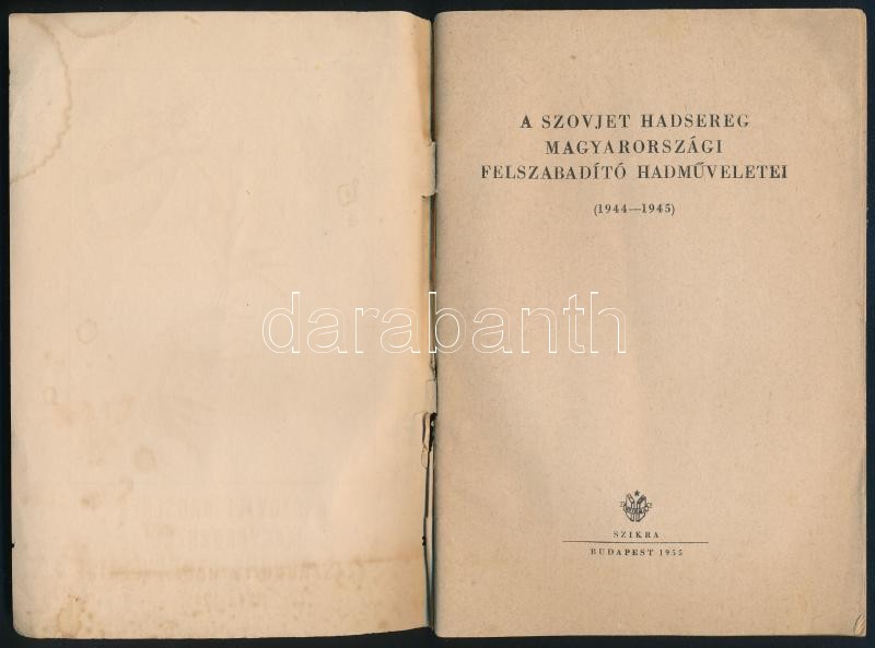 1955 A szovjet hadsereg magyarországi felszabadító hadműveletei (1944-... https://www.darabanth.com/hu/416-Gyorsarveres/416.0/Mutargy-papirregiseg-egyeb/Militaria~500028/1955-A-szovjet-hadsereg-magyarorszagi-felszabadito-hadmuveletei-1944-1945-megviselt-allapotb~II2622456