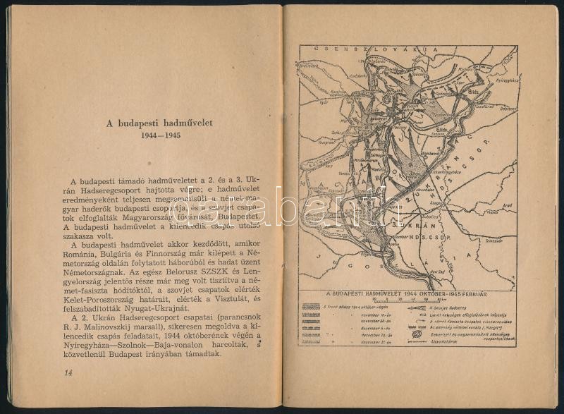 Leírás: 1955 A szovjet hadsereg magyarországi felszabadító hadműveletei (1944-1945), megviselt állapotban, 35p