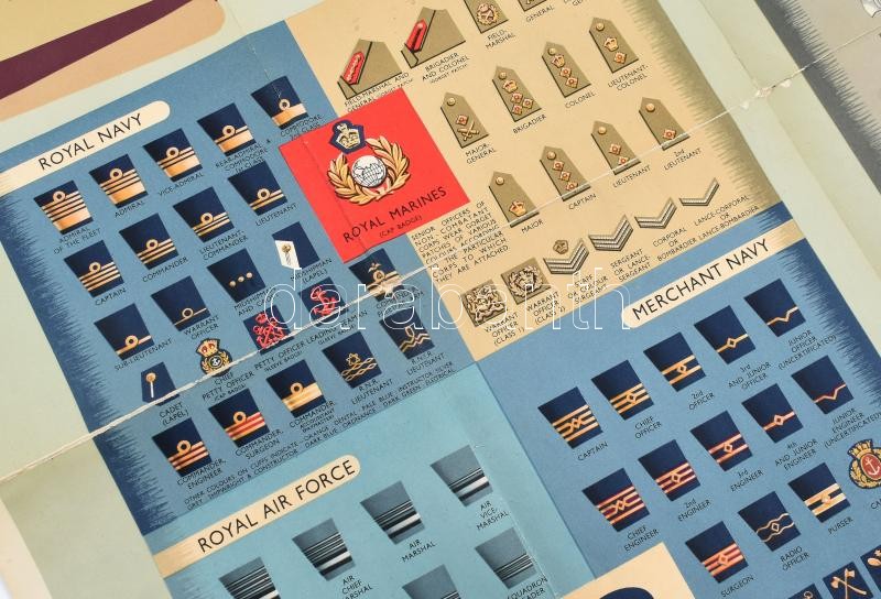 Leírás: Brit katonai rangjelzések, kitüntetések plakát. Hajtva. 75x50 cm