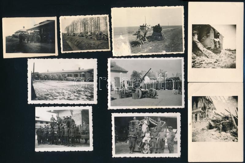 Leírás: cca 1930-1940 9 db katonai fotó a Horthy-korszakból (járművek, konvoj, tüzérség, stb.), közte egy sérült, 5,5x4 cm és 9,5x6,5 cm közötti méretben
