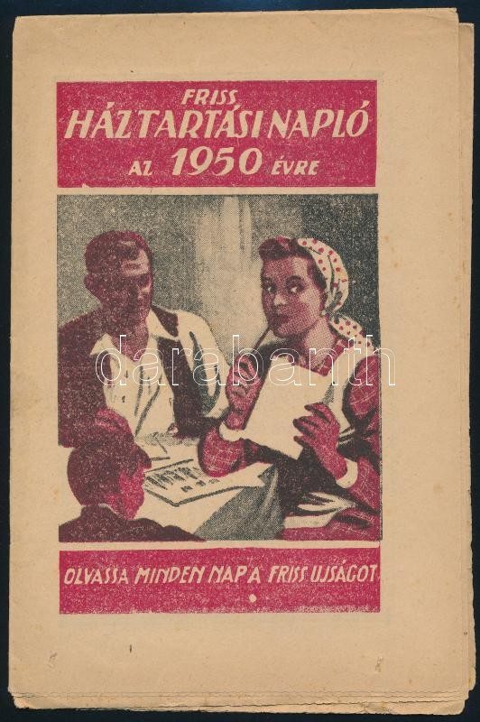 1950 Friss háztartási napló az 1950. évre, a Friss Ujság kiadványa, ki... https://www.darabanth.com/hu/416-Gyorsarveres/416.0/Mutargy-papirregiseg-egyeb/Nyomtatvanyok~1000002/1950-Friss-haztartasi-naplo-az-1950-evre-a-Friss-Ujsag-kiadvanya-kitoltetlen~II2619310